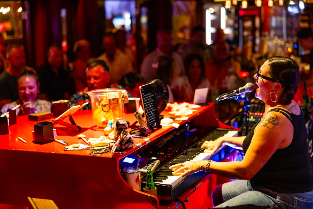 Sopranos is the go-to piano bar on Palm Beach’s hotel strip, a fun, open-air hotspot where regulars and visitors mix with ease. The vibe is casual, the energy is high, and the music? Always on point. Our international piano star can take you from Sinatra to Elton John to today’s hits on request, turning every night into a sing-along you won’t forget. At Sopranos, the music always finds a way to make you smile.
