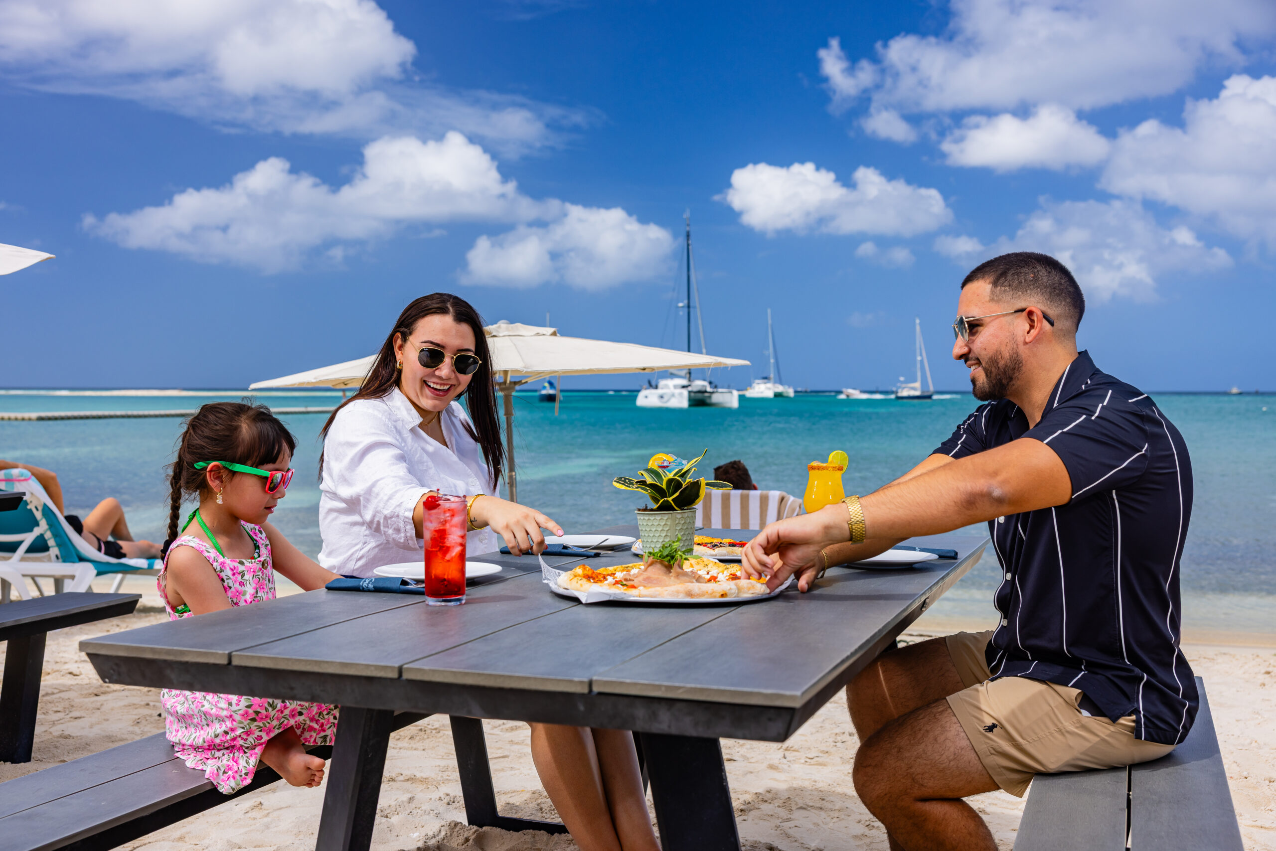 At Surfside Beach Bar, life feels lighter the moment your feet hit the warm sand, real smiles, ice-cold drinks, and finger-licking food set the tone for a perfect beach day. From your spot by the water, watch airplanes glide in over the Caribbean Sea and sip a cocktail as the sky turns into a postcard-perfect sunset. Stay from morning to evening, enjoying great lunches, sinful snacks, cozy dinners, and the comfort of beach chairs and umbrellas waiting just for you.