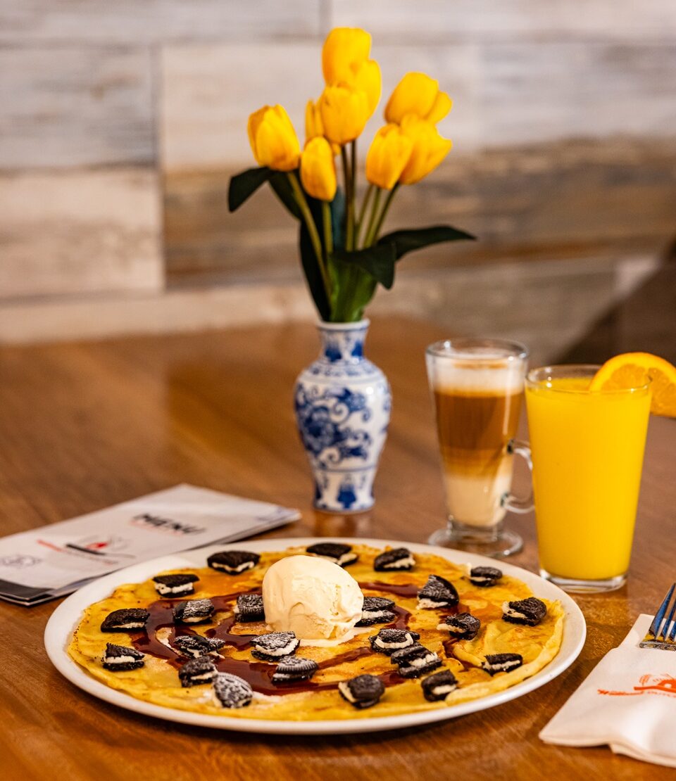 Explore Willem’s Dutch Pancakes, a charming Dutch eatery located on Palm Beach’s vibrant hotel strip. Our pancakes are carefully prepared using the freshest ingredients, with flour authentically produced according to the time-honored 19th-century methods of Dutch miller Willem van Tooren. The menu offers a wide variety of sweet and savory Dutch pancakes, each delicious and always affordable. We also serve home-roasted coffee, including a selection of hot and cold specialty coffees.